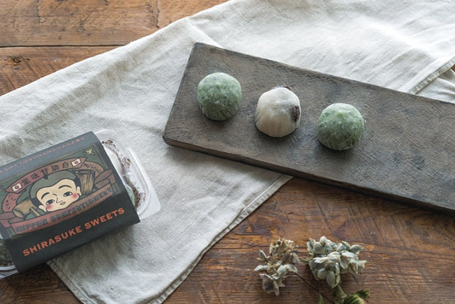 よもぎ大福は国産よもぎに北海道小豆餡を使い、どこか懐かしいお味になっております。